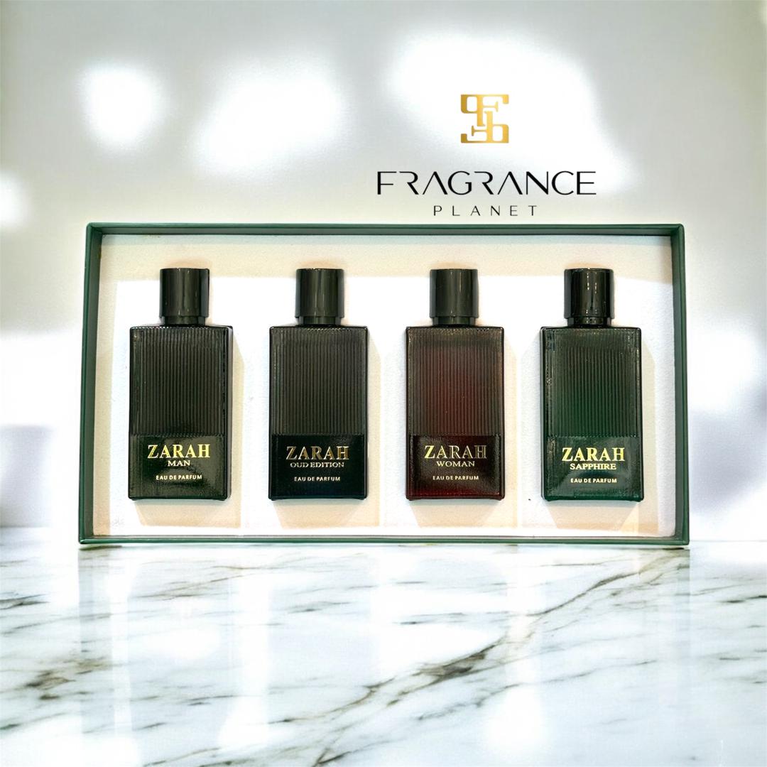 A versatile unisex perfume set featuring four long-lasting 25 ml Zarah fragrances. Perfect for gifting, travel, or everyday scent rotation with clean, floral-woody notes that last all day.